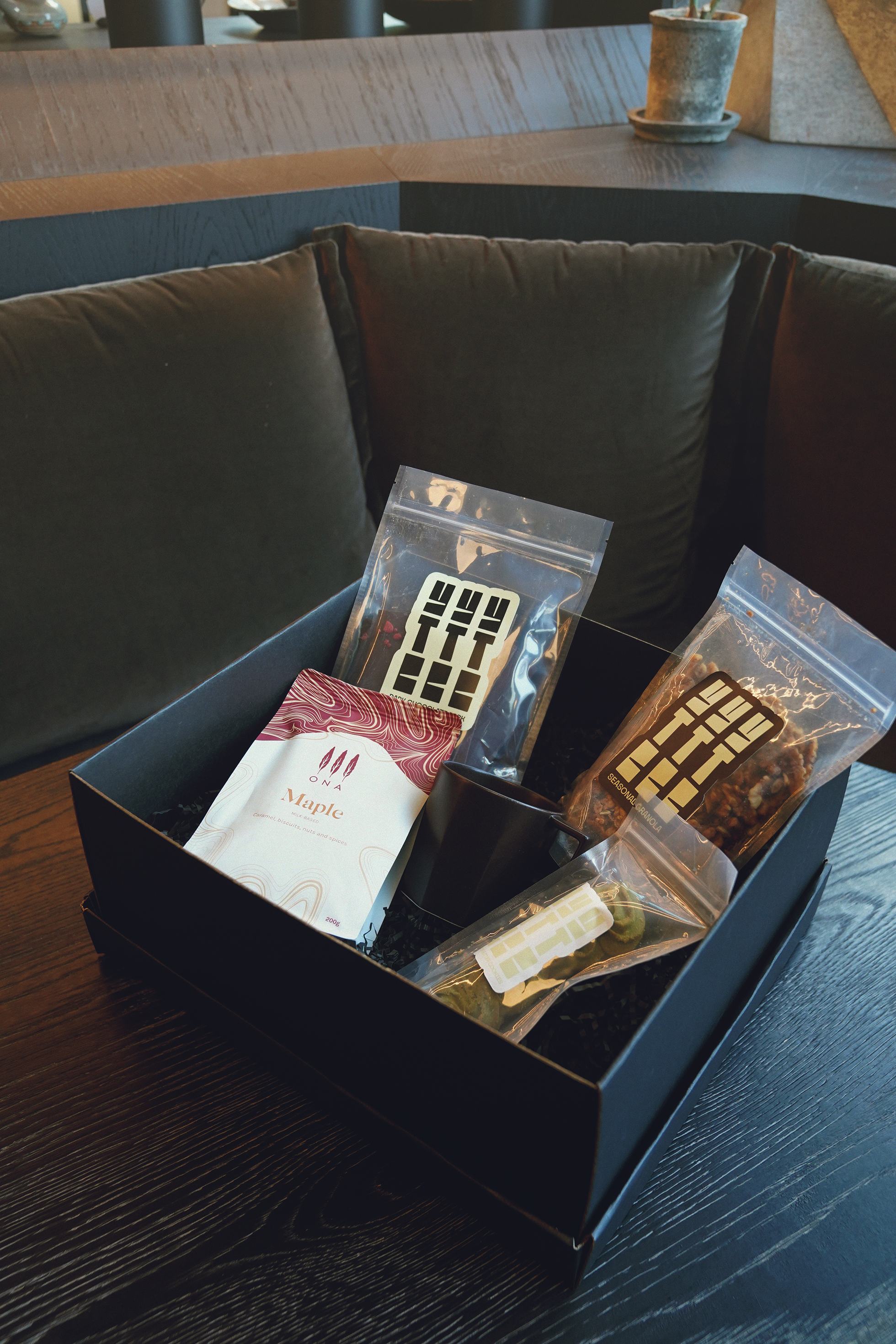 Start the day with this indulgent hamper, filled with artisanal coffee, house-made granola, and carefully selected accompaniments to create a cozy morning ritual. Presented in a sleek black box with a lid and finished with a custom Yugen ribbon.
